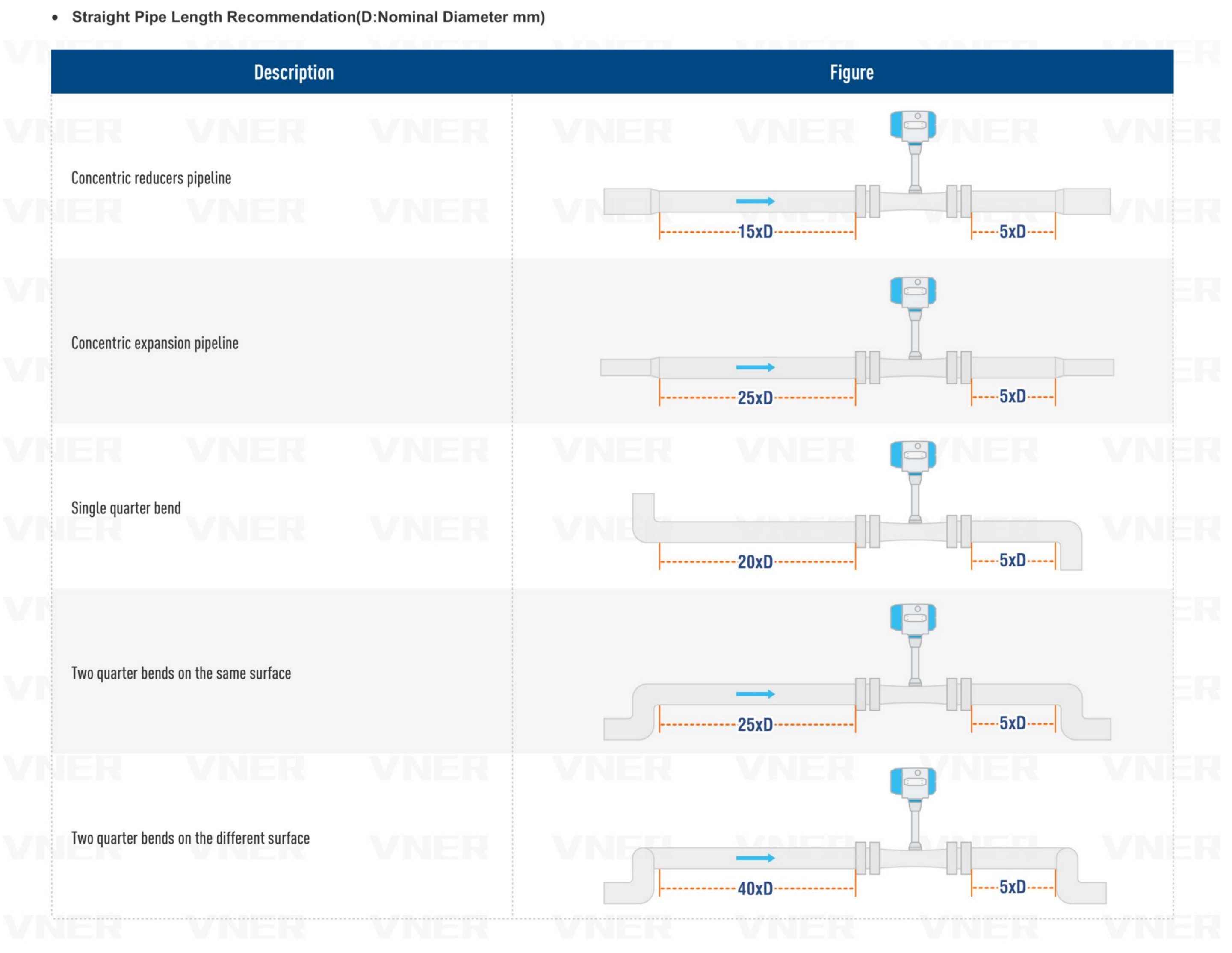 | Upstream Disturbance | Minimum Upstream Straight Run | Minimum Downstream Straight Run |