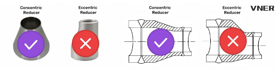 2.Reducer Selection: Always Use Concentric Reducers
